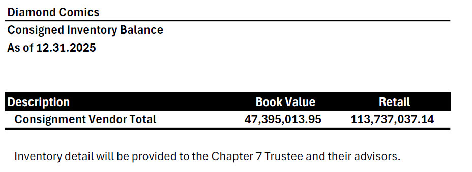 The inventory will now be sold to pay off debts. That is if it makes enough to pay off the debts. It probably won’t. And yes, Stephen Geppi, the former owner of the company, owes money to it. I won’t say that debt will be wiped, but, hey, the lawyers are all being paid in full.
