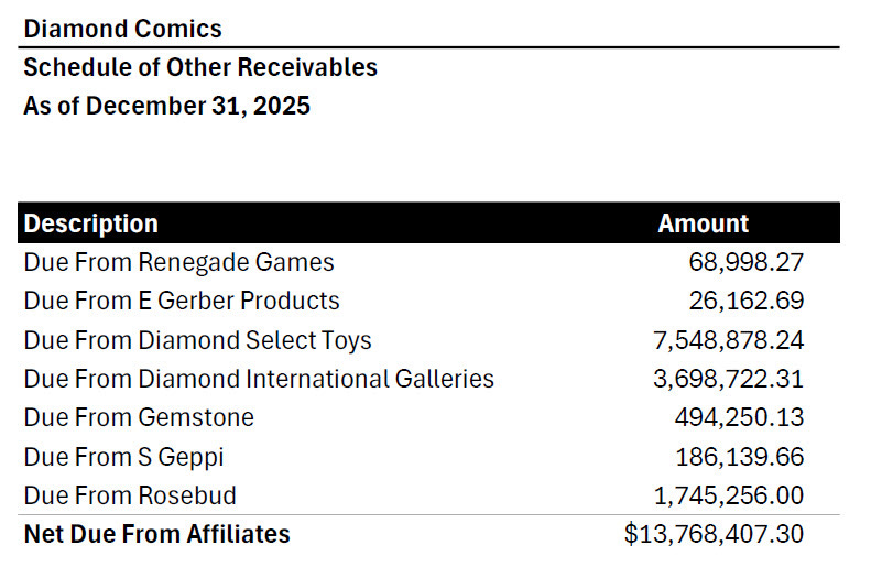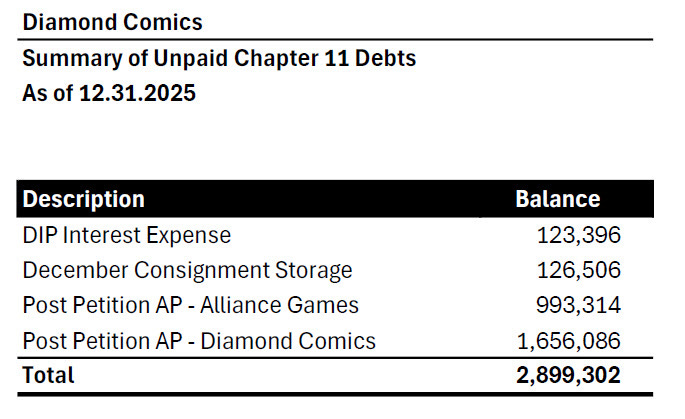 The recent court filings have thrown up a complete list of what is owed by Diamond via a proof of claims report. We now have the final amounts that Diamond owe individuals, publishers and more. And it’s not good. There’s 155 pages of information to wade through. And none of these people will be paid as the final amount allowed to be paid is…zero.